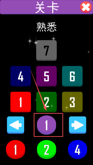 2、进入关卡:在关卡熟悉界面点击1进入第一关。