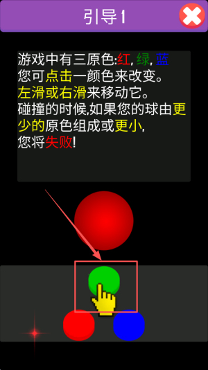 3、阅读规则:在引导1界面阅读三原色规则后点击继续。