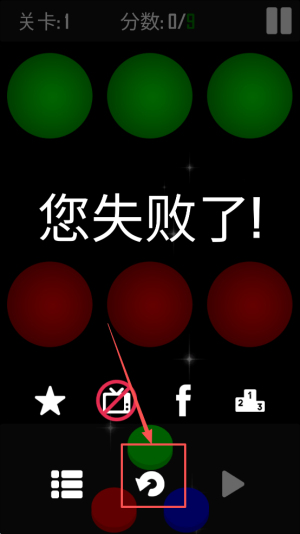 4、挑战失败:出现关卡1分数0/9您失败了,点击重开再次挑战。