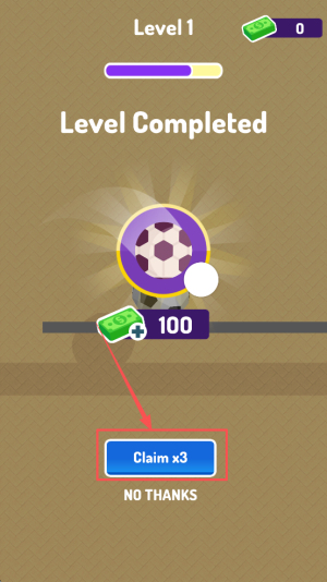4、完成领奖:显示Level1 Level Completed 100,点击Claim x3领取三倍奖励。