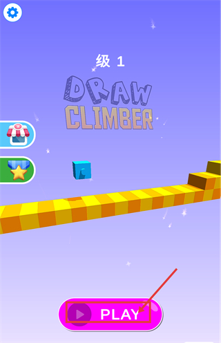 1、在【DRAW-CLIMBER-级1】界面,点击【PLAY】开启关卡,可借助左侧【商店】【奖章】功能辅助后续攀爬挑战。