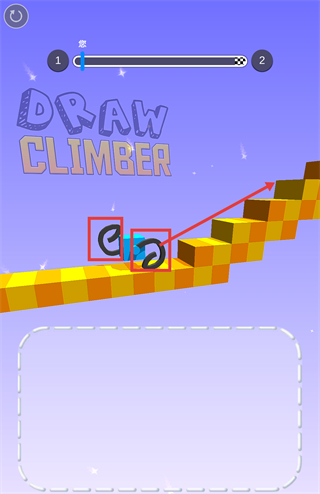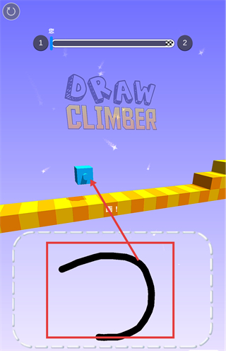 3、借助绘制的【形状-装置】,操控【蓝色方块】攀爬【台阶-区域】,持续推进当前关卡的进度条。