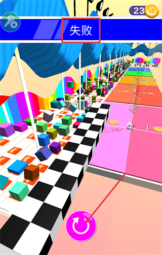 4、出现【失败】提示后,点击下方【重置按钮】重新开启关卡,调整绘制形状的策略以推进关卡进度。