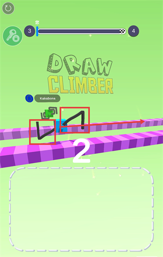 2、在关卡中绘制【折线-形状】,操控【蓝色方块】推进移动,追赶对手【Kakabona】,同步推进【进度条-3-4】的关卡进程。