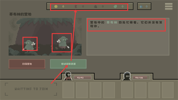 3、进入【哥布林的营地】后,哥布林未察觉己方,选择【尝试窃取资源】可获取物资,此时注意保留队伍状态。