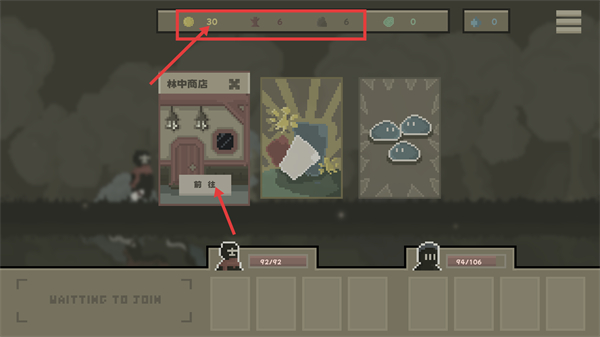 4、完成营地探索后获得【30金】等奖励,界面出现【林中商店】选项,点击【前往】可进入商店进行交易。