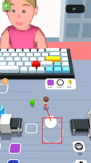 1、界面含【8+-CADPA適齡提示】,操作角色移动至【白色圆圈】区域,借助【颜色】【形状】功能,准备对应键盘按键的道具匹配。
