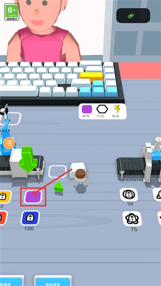 4、点击界面的【形状】功能选项,操作角色携带【紫色方块】道具,对应匹配键盘按键,解锁【助手】功能以提升流程效率。