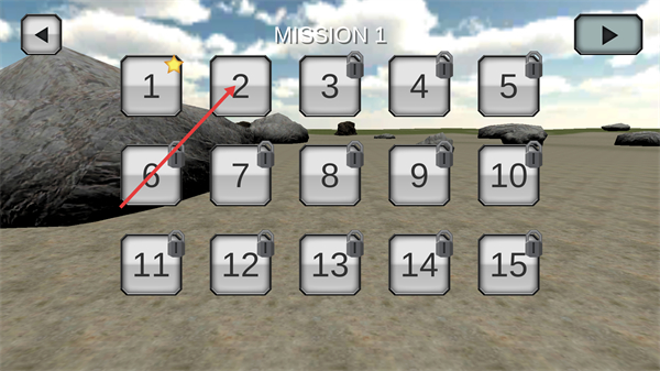 1、进入【MISSION-1】关卡界面后,完成【1】关可解锁【2】关,后续关卡需依次通关解锁,点击对应关卡即可进入挑战。