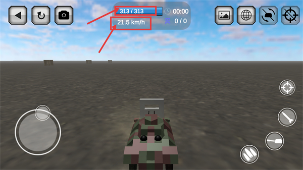 4、进入测试驾驶界面,关注顶部【313/313】状态与【21.5-km/h】速度,通过左侧摇杆控制车辆行驶。