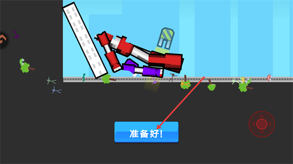 3、道具与武器库丰富多样,导弹、抓钩等装备可扭转战局,远程轰炸、拉人摔跤或用场景物品作战,拾取道具提升胜率。