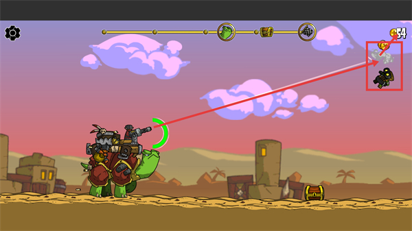 3、遇到【空中敌方单位】时,调整武器瞄准方向发起攻击,击败后可获取【金币-54】等资源,提升本次关卡的收益。