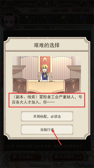 2、面对【(副本-线索)-冒险者工会严重缺人-号召各大人才加入】的选项,选择【当独行客】可开启独立发展路线,解锁专属剧情分支。