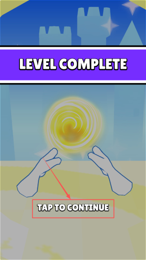 4、完成通关:出现LEVEL COMPLETE界面,点击TAP TO CONTINUE领取奖励并进入下一关。