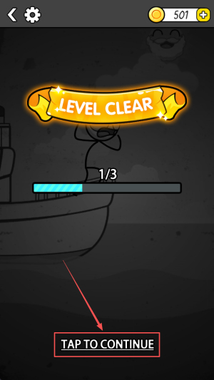 3、完成目标:到达501+出现LEVEL CLEAR 1/3点击TAPTOCONTINUE。