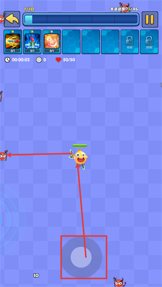 1、结合割草核心体验设计贴合球球形象的攻击与技能体系,无需复杂操作铺垫,轻松上手就能开启对战,应对四面八方的怪物攻势。