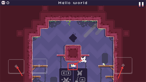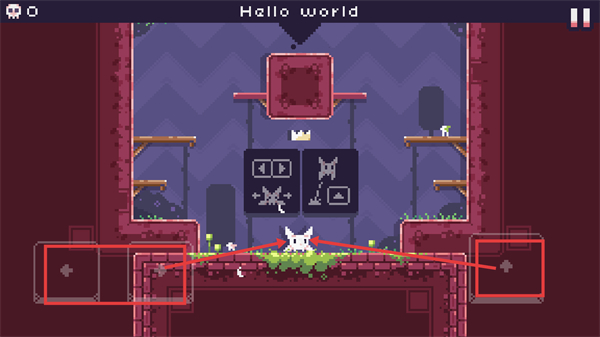 2、在【Hello-world】场景中,通过左右侧控制键操控角色移动,靠近带图案的方块并尝试交互,推进当前关卡的进度。