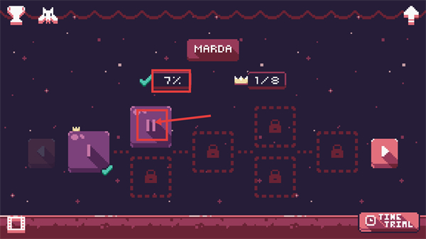 4、查看【MARDA】模块的【7%】进度与【1/8】皇冠,点击带箭头方块,解锁对应带锁区域以推进游戏的进程。