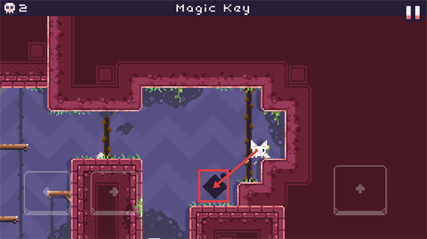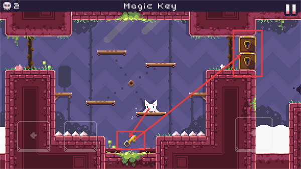 1、在【Magic-Key】场景中,操控左右侧控制键移动角色,避开下方尖刺,向右侧区域移动,目标是获取场景内道具推进关卡。