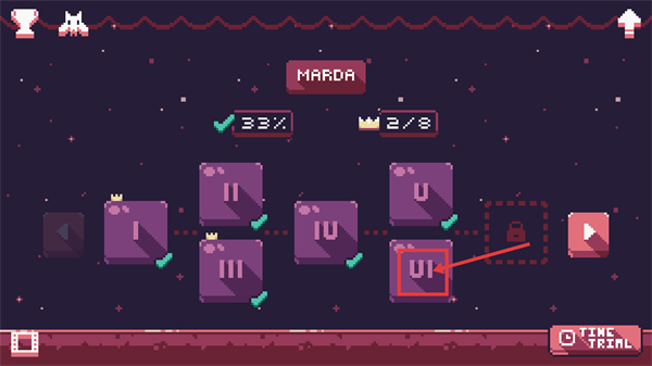4、回到【MARDA】界面,进度更新为【33%】-皇冠仍【2/8】,点击标有【VI】的方块,可进入新关卡继续推进游戏。