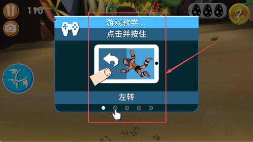 2、学习左转:在游戏教程中,点击并按住屏幕上的左转图标,学习如何使角色向左转动。