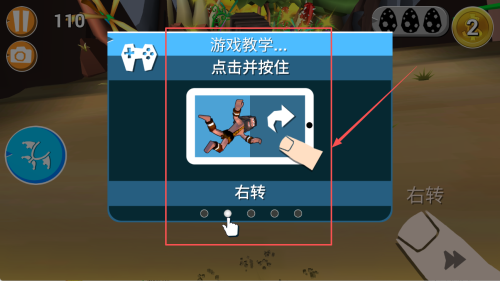 3、学习右转:同样地,点击并按住屏幕上的右转图标,学习如何使角色向右转动。