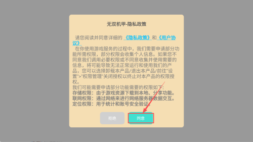 1、同意隐私政策:在游戏启动界面,阅读并点击“同意”以接受隐私政策。