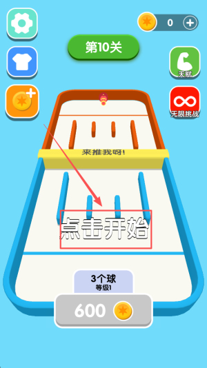 1、进入赛场:在0第10关8无限挑战界面点击“点击开始”。