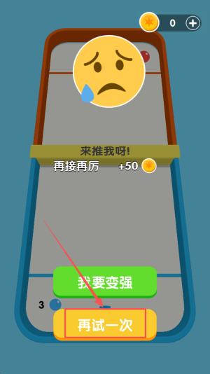 4、失败重试:在0再接再厉+50界面点击“再试一次”重新挑战。