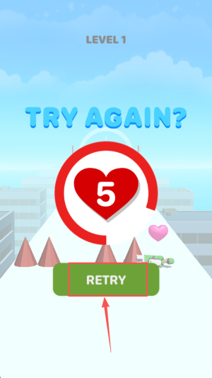4、失败重试:出现LEVEL1 TRYAGAIN?5点击RETRY重新挑战。