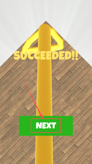 4、通关继续:显示SOCCEEDED! NEXT,点击NEXT进入下一关。