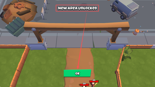 4、解锁新区域:完成任务后,点击“OK”按钮解锁新游戏区域。
