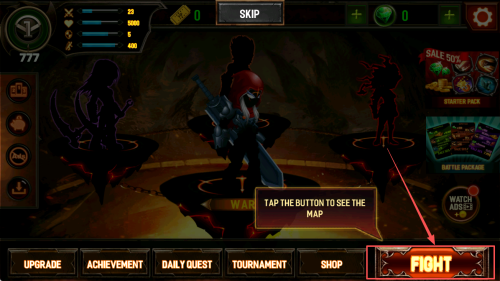 2、选择战斗:在角色选择界面,点击“FIGHT”按钮进入战斗。