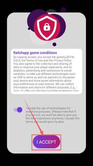 1、阅读政策:在Ketchapp game conditions界面点击I ACCEPT。