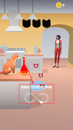 1、开启闯关准备:选择目标场景,熟悉手指点击操控猫咪的方式,观察主人活动范围与物品分布,明确 “捣蛋不被抓” 的核心目标。