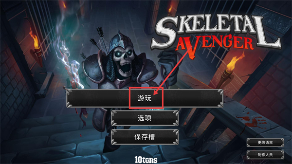 1、进入【SKELETAL-AVENGER】的界面,点击【游玩】按钮开启游戏,可先通过【选项】熟悉设置,利用【保存槽】记录后续进度。