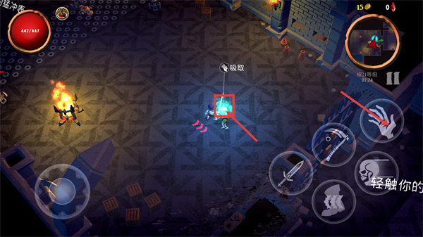 3、战斗过程中触发【吸取】功能后,轻触对应按钮获取资源,同时关注【猛冲表】的状态,辅助后续战斗操作。