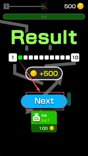 4、完成关卡:在Result+500界面点击Next继续挑战。