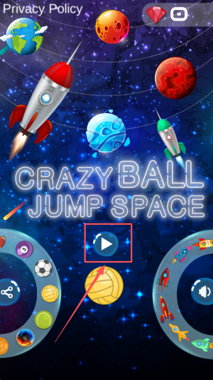 1、阅读政策:在PrivacyPolicy CRAZYBALL JUMP SPACE界面点击JUMP SPACE。