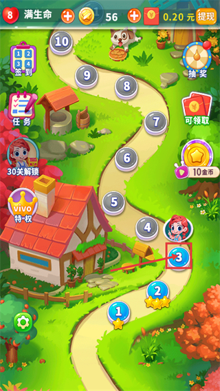 4、通关【第3关】获得【金币奖励-8】,【0.3元-提现进度-16%】,点击【下一关】继续挑战,可看广告提升提现进度。