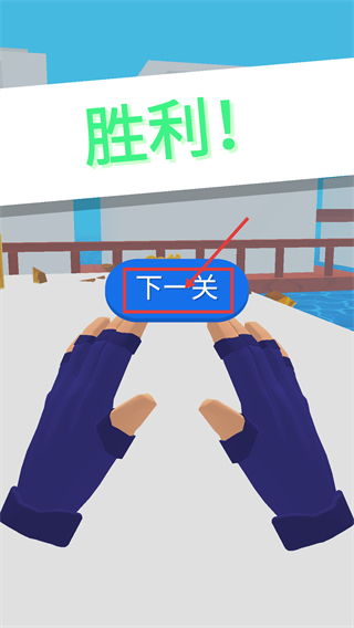 4、关卡完成显示【胜利!】后,点击蓝色的【下一关】按钮,进入后续关卡继续挑战,积累资源提升关卡进度。