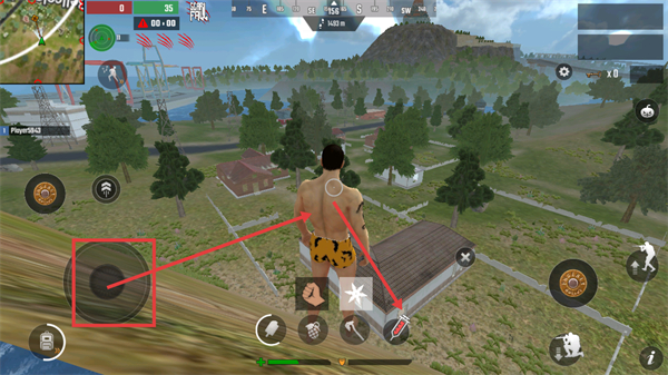 1、利用左下角移动轮盘控制角色移动至建筑区域,借助下方【医疗道具】维持状态,同时关注上方倒计时与【小地图】的区域提示。