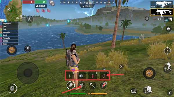3、处于户外区域时,利用底部道具栏的手雷等道具应对目标,同时关注上方倒计时调整行动节奏。