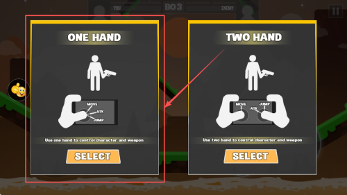 1、选择控制方式:在游戏设置中,选择“单手”或“双手”控制方式,点击“SELECT”确认。
