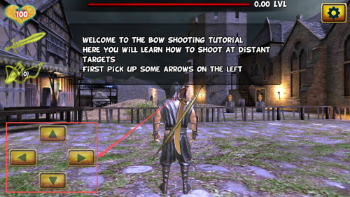 3、学习射击:根据教程提示,首先在左侧拾取箭矢。