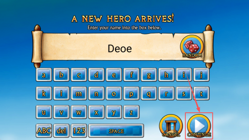 3、创建角色:在角色创建界面,输入你的角色名,然后点击“CONTINUE”按钮继续。