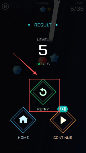 4、完成挑战:在MISSION LEVEL 5/35 RESULT界面点击CONTINUE进入下一关。