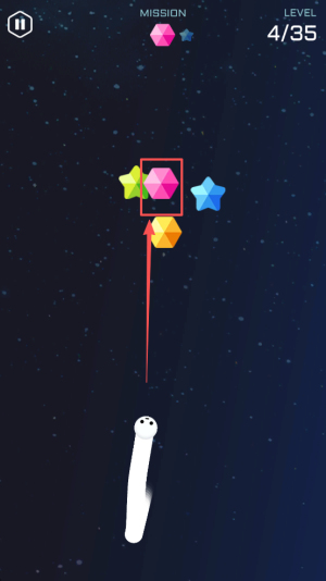 2、操控蛇身穿梭:灵活移动蛇身穿梭于空间,精准吞噬星星宝石,积累成长能量让身体不断变长。