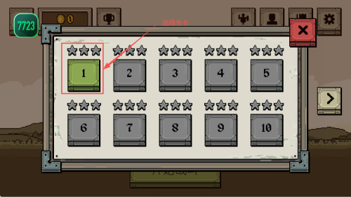 3、选择关卡:在关卡选择界面,点击选择一个关卡,例如“1”。
