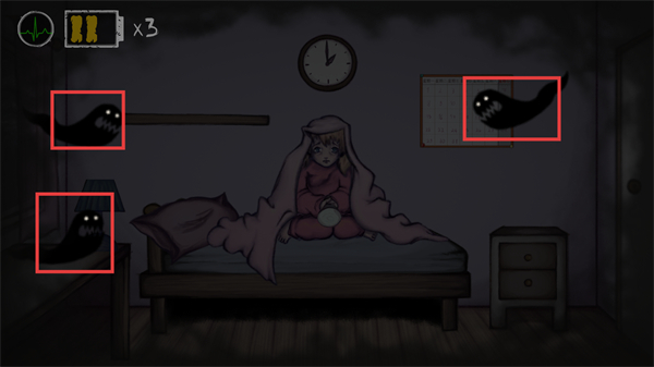 3、使用手中的【手电筒】照射出现的【黑色幽灵】,通过该操作可驱散幽灵,同时关注道具的剩余数量,确保场景威胁逐步解除。